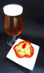 Zeebaarsfilet met komkommer, rode paprika, rode ui , harissa en Brand IPA