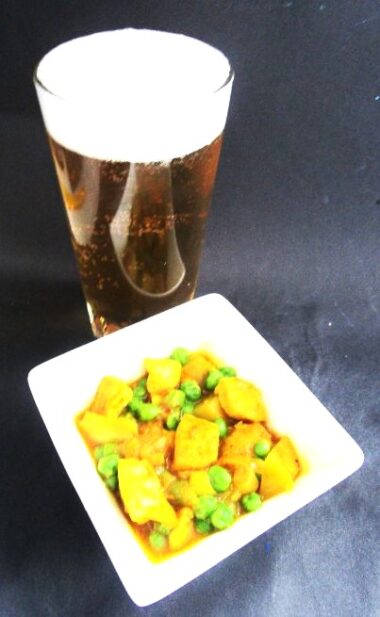 Kalkoenfilet, zoete aardappel, ras el hanout, doperwten