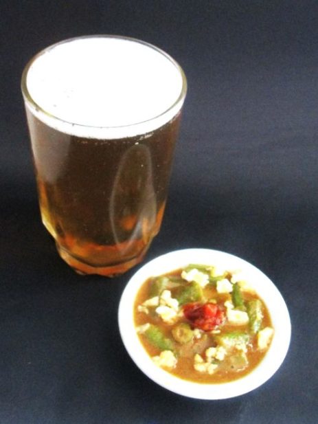 Pils, witbier, Weizen, blond bieren tussen 5 en 8 vol%, Saison, Session India Pale Ale tussen 3 en 5 vol%. De frisse en vaak fruitige smaak van deze bieren past goed bij de licht pikante toets en de smeuïge textuur van de pindasaus.
